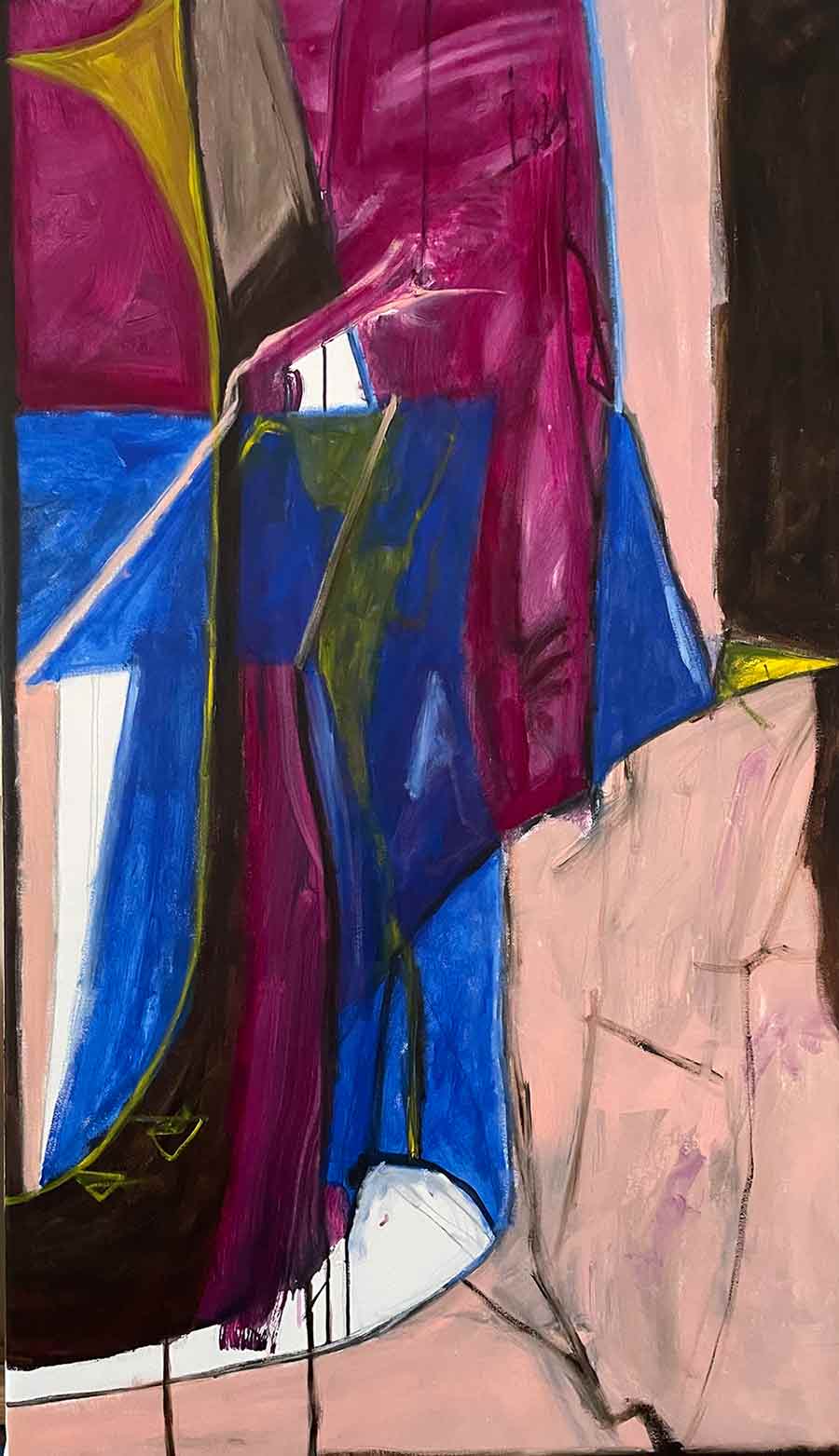 Guardians of Dusk, Acrylic and charcoal on canvas, 66 x 38 x 1.5 inches, 2021