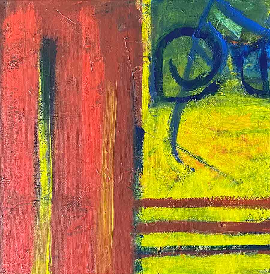 Watcher of the Burning Road, Acrylic on canvas, 12 x 12 x 1.5 inches, 2022