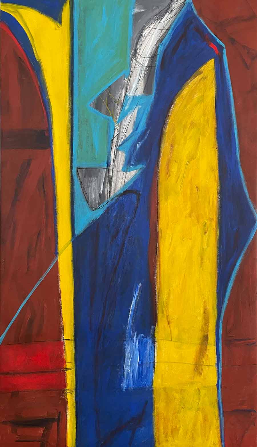 Falling Like a Thunderbolt, Acrylic and charcoal on canvas, 66 x 38 x 1.5 inches, 2021