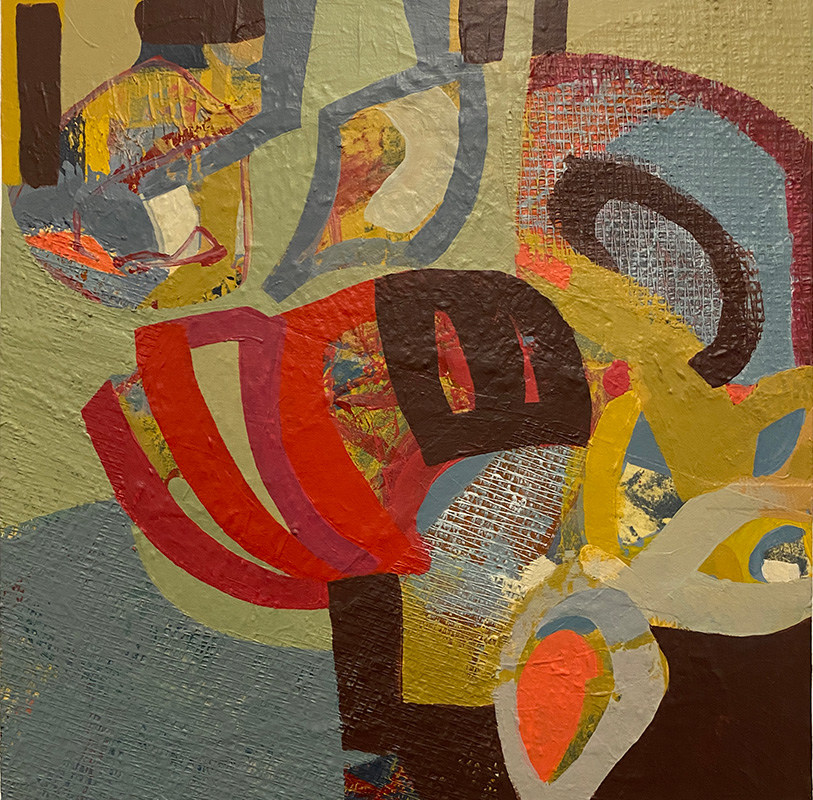 Thistle 01, acrylic/collage on cradled wood panel, 12 x 12 inches, 2024
