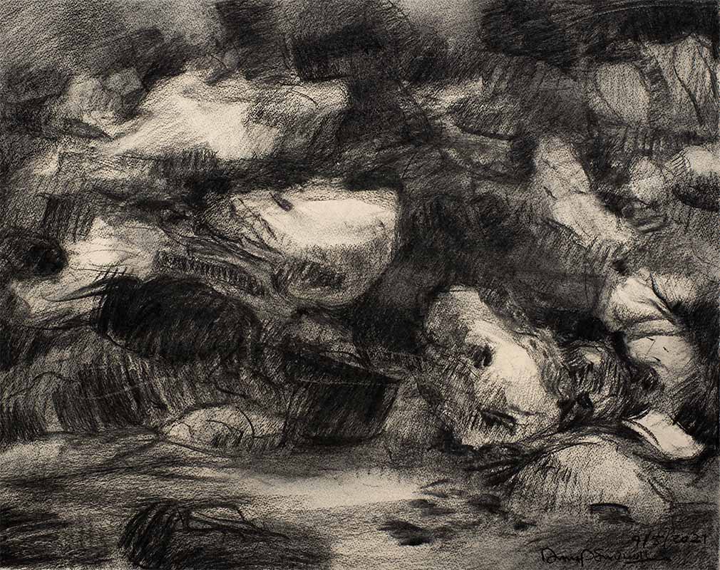 Drawing 9521, charcoal on paper, 21 x 26.5 inches, 2021