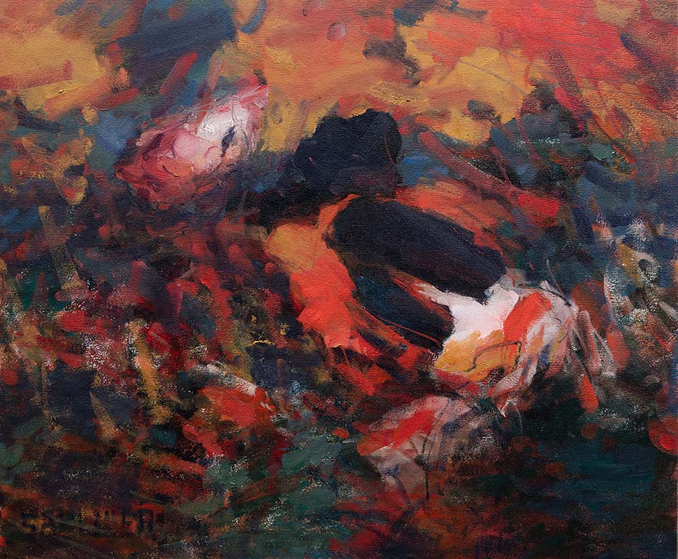 Untitled 011224, mixed media and oil on canvas on panel, 30 x 36 x 2 inches, 2024