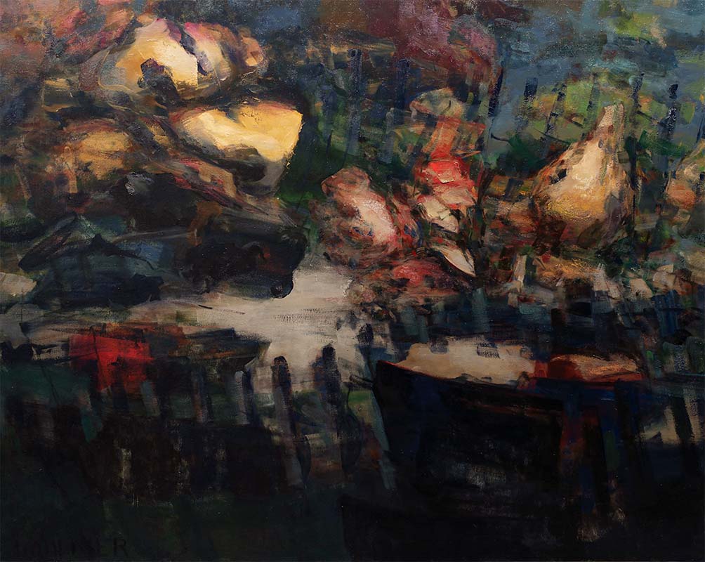 Fulcrum, oil on linen, 64 x 80 x 3 inches, 2021