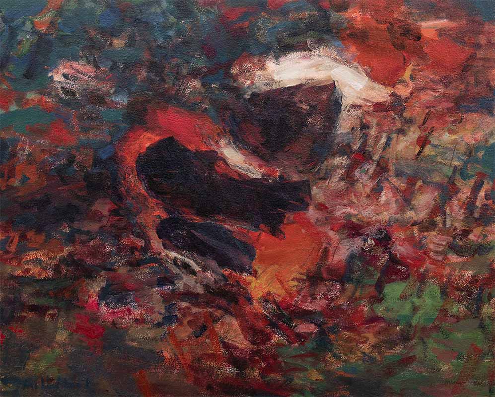 Untitled 020324, mixed media and oil on canvas on panel, 28 x 35 x 2 inches, 2024