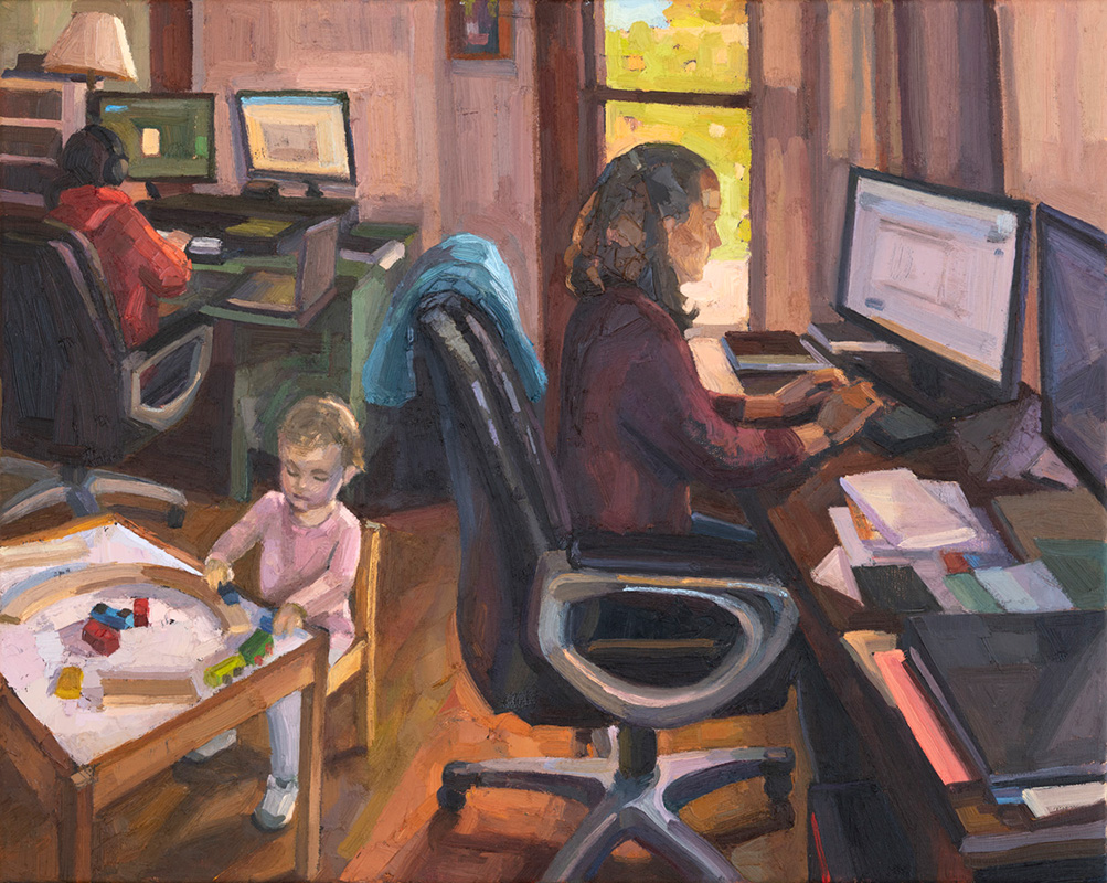 Working, oil on linen, 17 x 21 inches, 2023