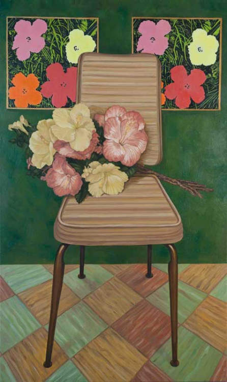 Portrait of Chair with Hibiscus and Andy Warhol's Flowers (1964), oil on canvas, 60 x 36 inches, 2011
