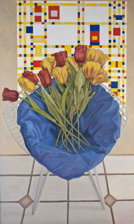 Portrait of Chair with Tulips and Piet Mondrian's 'Broadway Boogie-Woogie' (1942–43), oil on canvas, 60 x 36 inches, 2010
