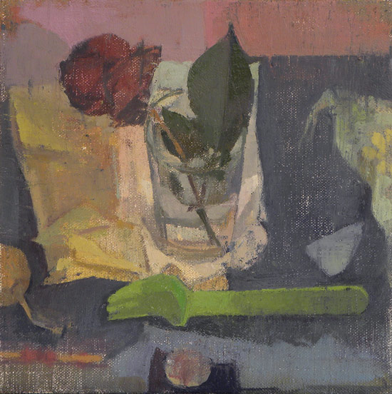 Late Rose at Night, oil on linen on panel, 8 x 8 inches, 2020