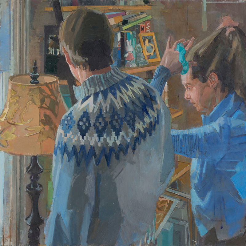 Fairisle Sweater, oil on linen, 44 x 44 inches