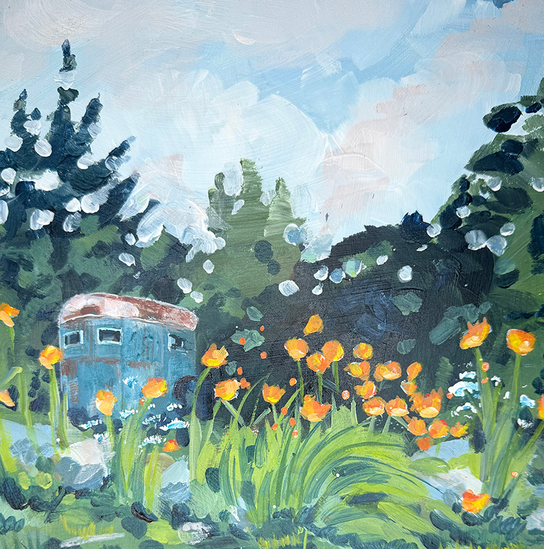 Backyard Band of Lillies 02, acrylic, 8 x 8 inches, 2025