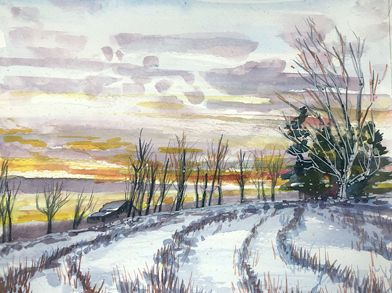 Sunset Burn, 8x10 inches, watercolor, 2021
