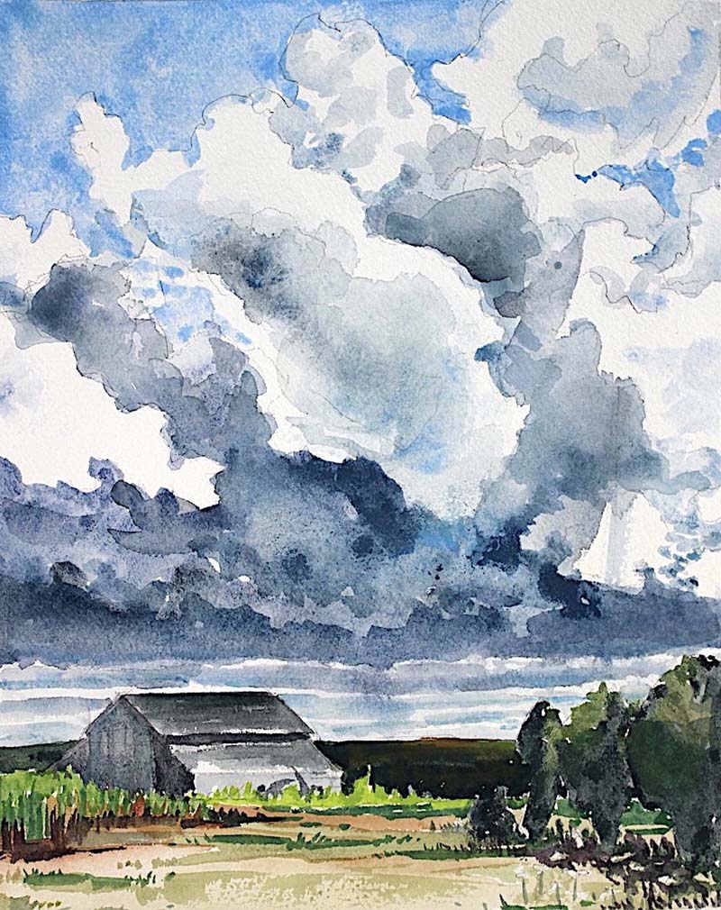 Cotton Clouds Eastview, 10x8 inches, watercolor, 2022