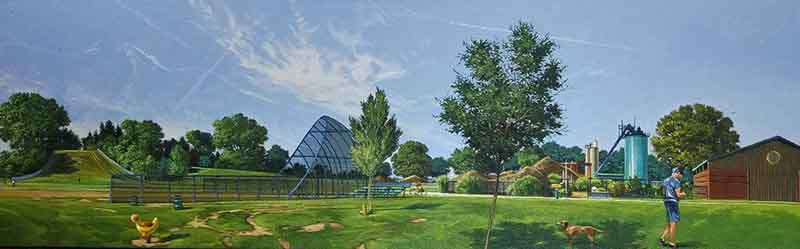 Evanston Backstop, oil on canvas, 14 x 45 inches, 2021