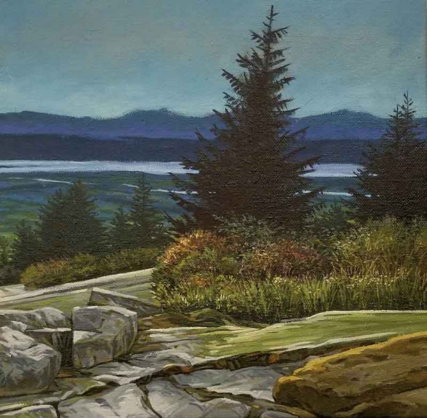 Rainy Morning, Acadia, oil on canvas, 10 x 10 inches, 2021