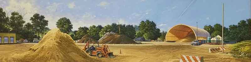 Highway Maintenance Yard, oil on canvas, 16 x 60 inches, 2016
