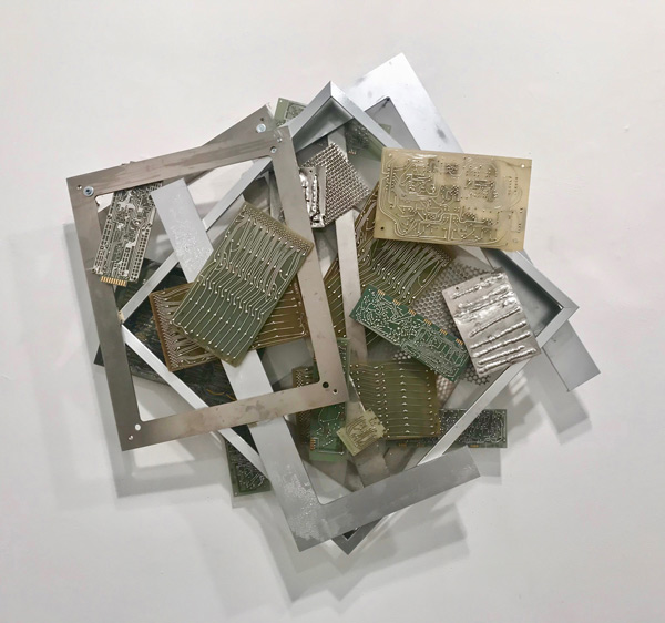 Circuits, Computer parts, plastic, metal, paint, 32 x 36 x 4 inches, 2019