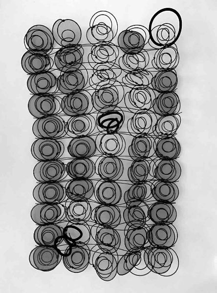 Spring Theory, metal, screen, nylon, 36 x 21 x 8 inches