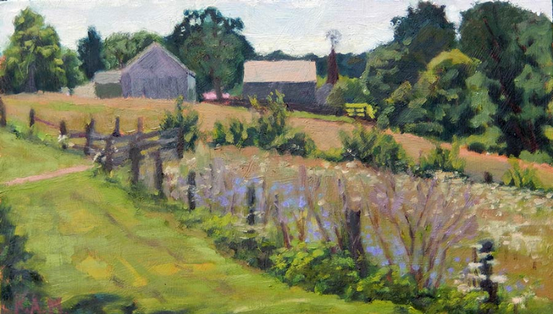Carriage Hill Farm in August, oil on hardboard, 9 x 16 inches