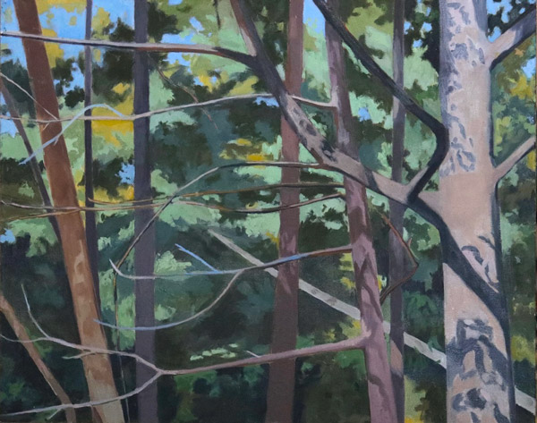 Six trees, oil on canvas mounted on panel, 16 x 20 inches, 2020