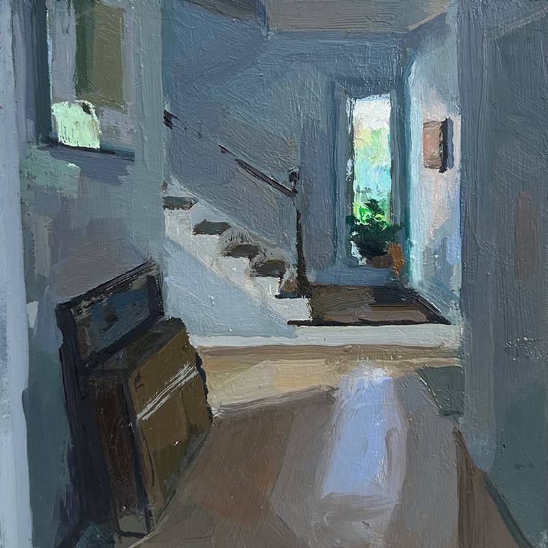 Interior with Jasmine, oil on panel, 5.5 x 5.5 inches, 2024