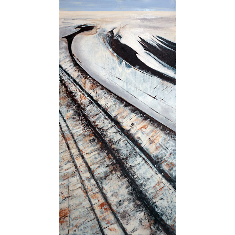 Muddy Wintry Tracks, 48 x 24 inches, oil on canvas, 2024