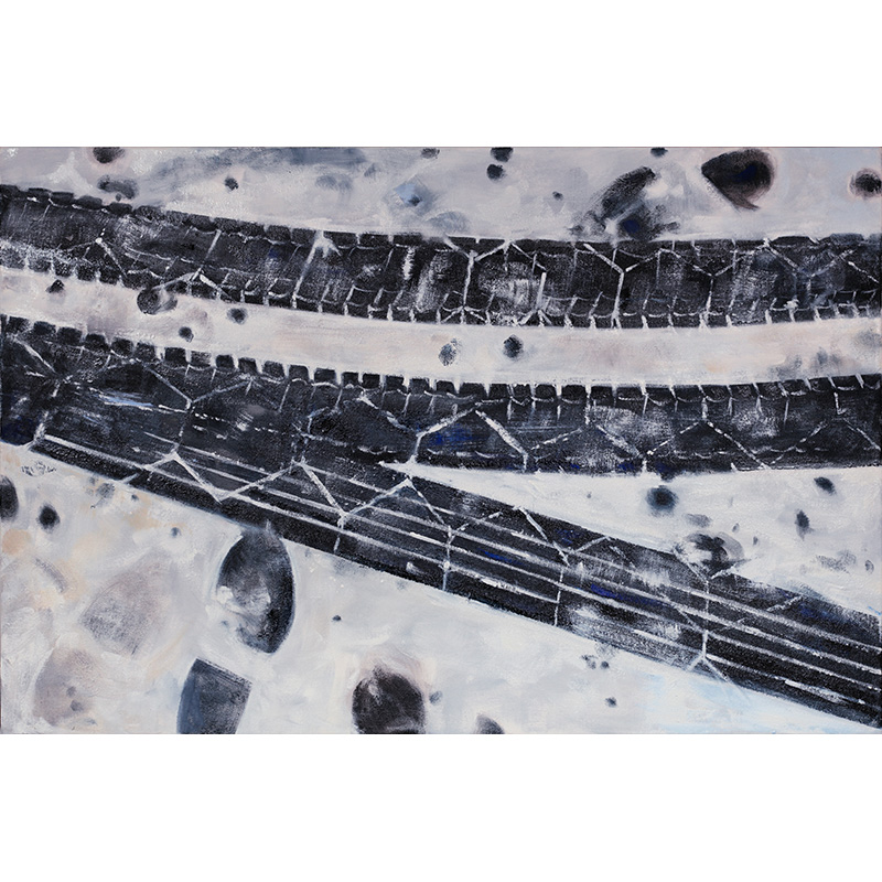 Fresh Tire Tracks and Other Snow Markings, 20 x 30 inches, oil on canvas, 2025