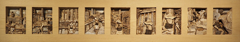 Athens, maple, burned and painted, 12 x 60 x 2 inches, 2017