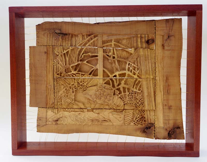 Insurrection #1, bloodwood, osage orange, wire, 19 x 24 x 3, 2021