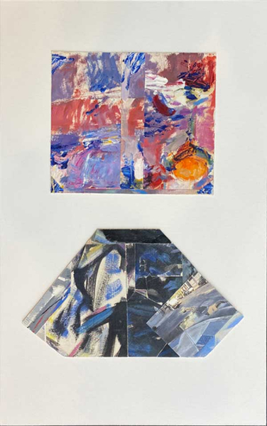 Mutual Attraction, mixed media collage on matboard (oil and acrylic on paper & canvas, inkjet print), 24.75 x 15.50 inches, 2022